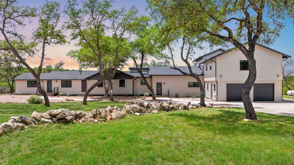 Private Hill Country Retreat on 2.5 Acres | Fully Remodeled | Panoramic Views Tucked behind a gated, fully fenced entrance, this private Spicewood retreat offers 1,784 square feet of beautifully remodeled living space on approximately 2.5 acres, surrounded by sweeping Texas Hill Country views. This residence is the largest of three distinct residences within an exceptional, uniquely private triplex, providing rare privacy and flexibility. Designed for comfort and versatility, the home features two bedrooms, two full baths, and a dedicated office or formal dining room, ideal for remote work or entertaining. Completely remodeled to the studs, the home showcases high-end designer finishes and a timeless modern farmhouse aesthetic. The gourmet kitchen features quartz countertops, custom cabinetry, stylish fixtures, and all-new appliances, opening to light-filled living spaces. New luxury vinyl plank flooring, energy-efficient windows, new insulation, and updated HVAC create a quiet, comfortable, and energy-efficient environment. Private outdoor space and an expansive deck invite relaxation and Hill Country views. An enclosed garage provides secure parking and storage. Washer and dryer are included, with water and septic covered, helping keep utility costs low. Though the setting feels secluded, the property is just moments from Highway 71, with easy access to Bee Cave, Marble Falls, Lake Travis, and favorite Hill Country destinations. With Spicewood’s growing appeal, this exceptional lease opportunity offers the ideal blend of privacy, scenic beauty, modern comfort, and accessibility.