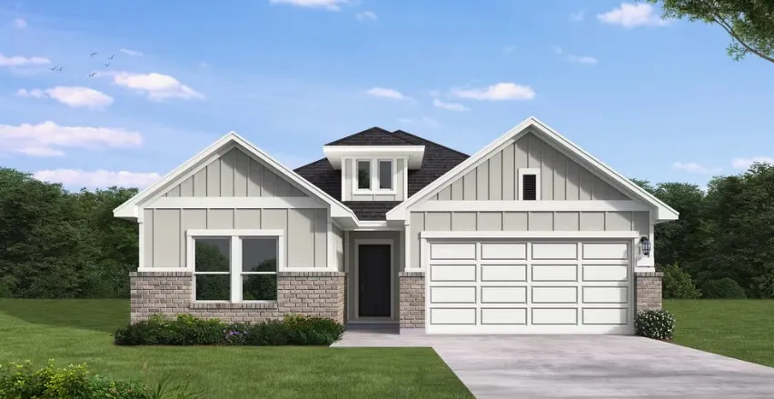 New Dream Finders Home! The Young floor plan is a spacious and functional one-story design offering 4 bedrooms, 3 full bathrooms, and a convenient two-car garage. This layout is ideal for modern living, with an open flow connecting key spaces like the great room, dining area, and kitchen, all perfectly positioned for both everyday activities and entertaining guests. The large kitchen features ample counter space, an island, and a pantry, providing plenty of room for storage and meal preparation. A cozy covered patio just off the dining room creates a seamless connection to the outdoors for relaxation or casual dining. The primary bedroom suite is privately located and includes a luxurious bathroom and a generously sized walk-in closet. Three additional bedrooms are thoughtfully positioned throughout the home, with Bedroom 4 featuring its own access to a full bathroom, making it perfect for guests or multi-generational living. A flex room near the center of the home offers versatility, allowing you to create a home office, playroom, or hobby space that suits your needs. Designed with comfort and efficiency in mind, the Young floorplan combines modern features and a practical layout, making it an excellent choice for those seeking a stylish single-story home with plenty of space for family and friends. ** Ask us about our low interest rates & special financing! Visit Onsite for details – subject to change without notice. **