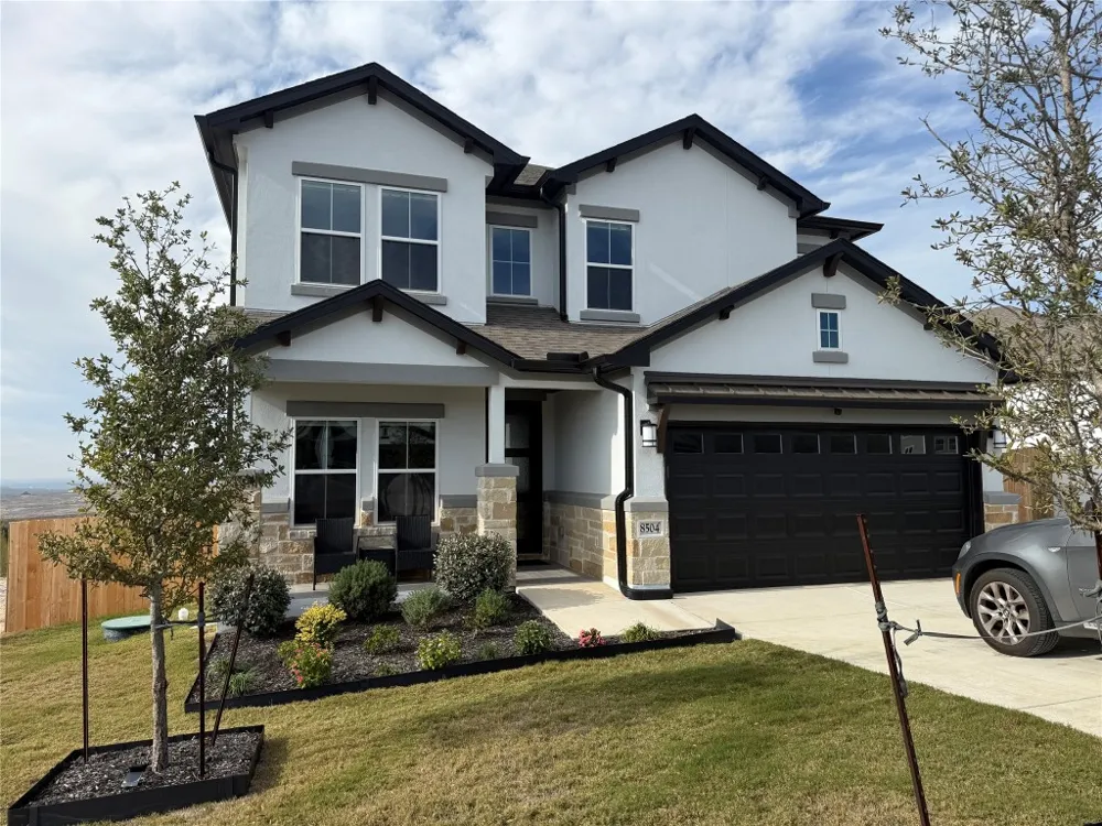 Welcome to this luxuriously and comfortably upgraded home in the resort-style Lakeside at Tessera on Lake Travis. New built in 2024 and as first-time rental, positioned on a premier lot with one-sided neighbor, this stucco/stone house boasts an open floor plan with a 285sqft elevated composite deck and tiled covered front & rear porch to enjoy panoramic views of the shimmering lake, serene ravines, continuous hill country and stunning nighttime city lights. This 5-bed & 3.5-bath house also features a dedicated office, main floor en-suite, one in-law en-suite and three beds on the second floor, which make it an ideal accommodation for smaller to multi-generation families. Its soaring ceiling living room open to the deck through sliding door, two-story tiled electric fireplace and a spacious loft create an inviting atmosphere for both everyday living and entertaining. The modern gourmet kitchen offers quartz counter-tops, six-burner cook-top, double ovens, and ceiling-height cabinets with glasses. Dining at the kitchen island or in the official dining room is also an eye-feast of nature views double the enjoyment of every meal. A true comfort and style living set up with automated shades, modern lighting and ceiling fans, purple-leaf deck umbrella, whole-house water filtration system, refrigerator, washer/dryer with storage pedestals, garage sink, epoxy floor and designer features throughout (such as tiled wall, wins-coating, wood-look floor tiles, windowed garage door, etc). The Community offers a desirable small-town vibe, heart to hill country, lake-front amenities, boat launch ramp, infinity- edge pool, miles of hike/bike trails, shoreline beach and highly rated Lago Vista ISD while remaining everyday conveniences within 5 minutes driving to Lago Vista shopping and 15 minutes to Leander shopping. This neighborhood feeds residents with unmatched opportunities to relax and connect with nature. Pet allowed with number and breed restrictions. Contact agent for details
